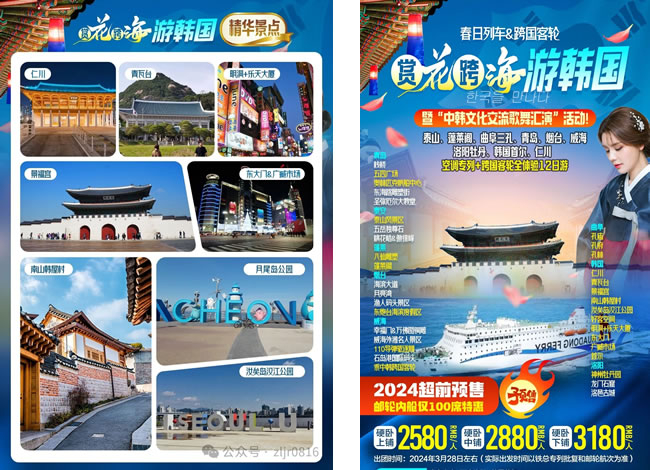 【用餐】全程含 6早12正,酒店含早 (不吃不退);正餐 25 元/人,為八菜一湯,十人一桌,不含酒水。(旅行社團(tuán)隊餐安排以當(dāng)?shù)乜谖稙橹?;若不足十人一桌按?biāo)準(zhǔn)團(tuán)餐餐標(biāo)安排,菜量種類相應(yīng)減少,散客餐不用不退) 。其中韓國 4 早餐 3 中餐 3 晚餐(2 早 2 晚為船上用餐) ;